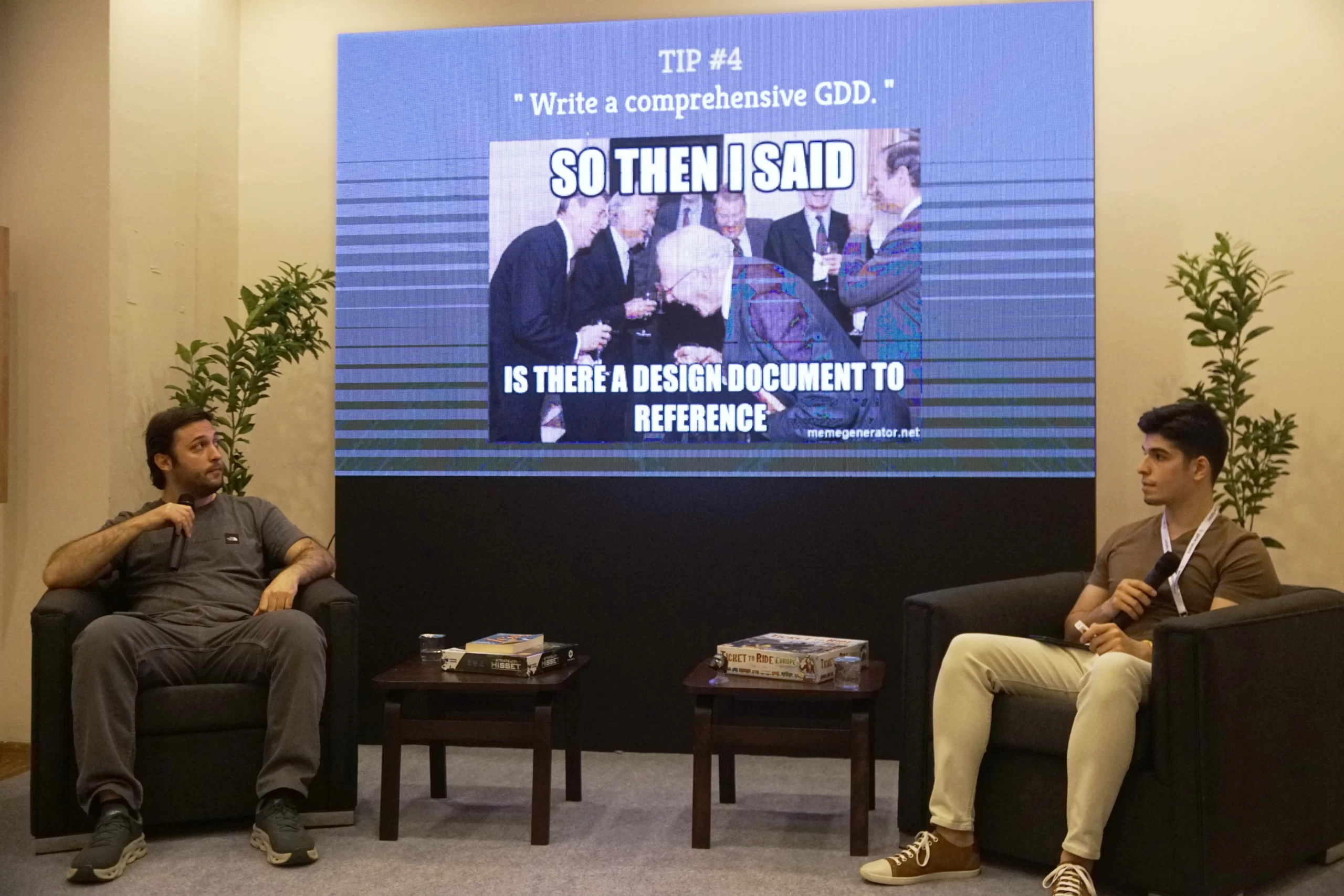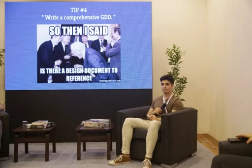 Our Project Manager Fırat Baban and Game Designer Mete Almali gave a presentation on “Product Management and Game Design on Large Scoped Projects” in the second day of the fair. In their speech, subjects as what are large scoped game projects with a couple of examples, which branches are involved and tips on development processes were the main topics. With including different branches on game development, the presentation mainly proceeded from the perspectives of project & product management and game design. Our teammates have also shared their own experiences and some examples from Racing Kingdom’s development process.